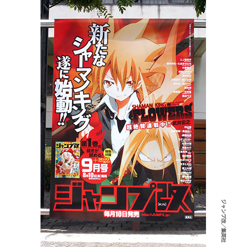On JumpX’s official twitter they have been posting some ads from around Tokyo. If you look really closely, you can see the covers for Shaman King Flowers volume 1 and the upcoming issue of JumpX (Kai)!: