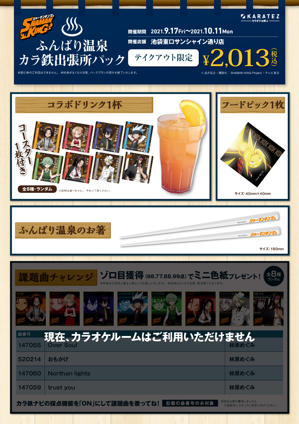 While previously reduced and delayed, the Karatez Karaoke Shaman King collaboration has officially restarted in Japan. The collaboration will run from September 17th through October 11th with some changes since its original run.