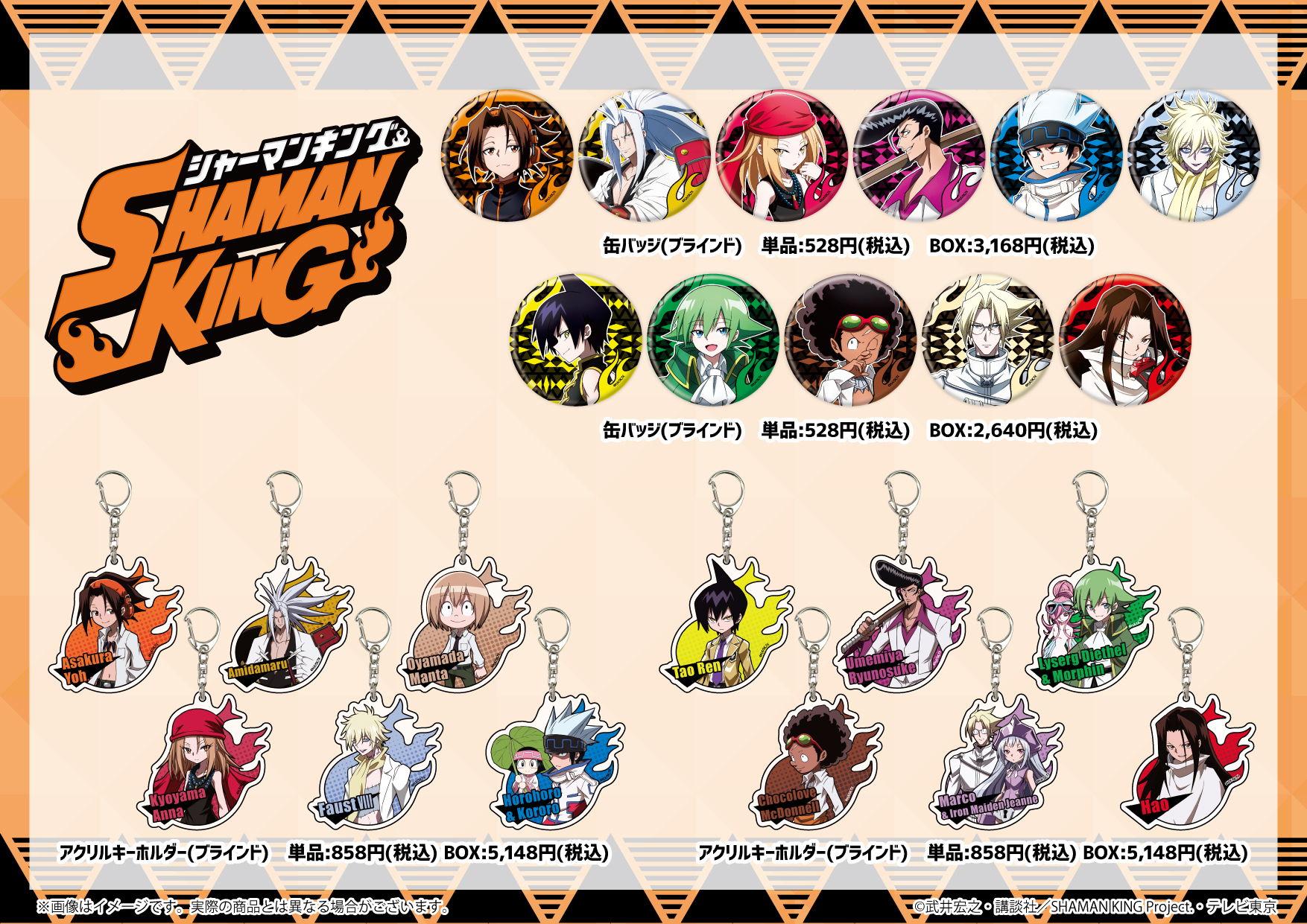 Designs: Yoh, Anna, Ren, Ryu, Horohoro, Faust, Lyserg, Chocolove, Jeanne, Marco, Silva, Hao