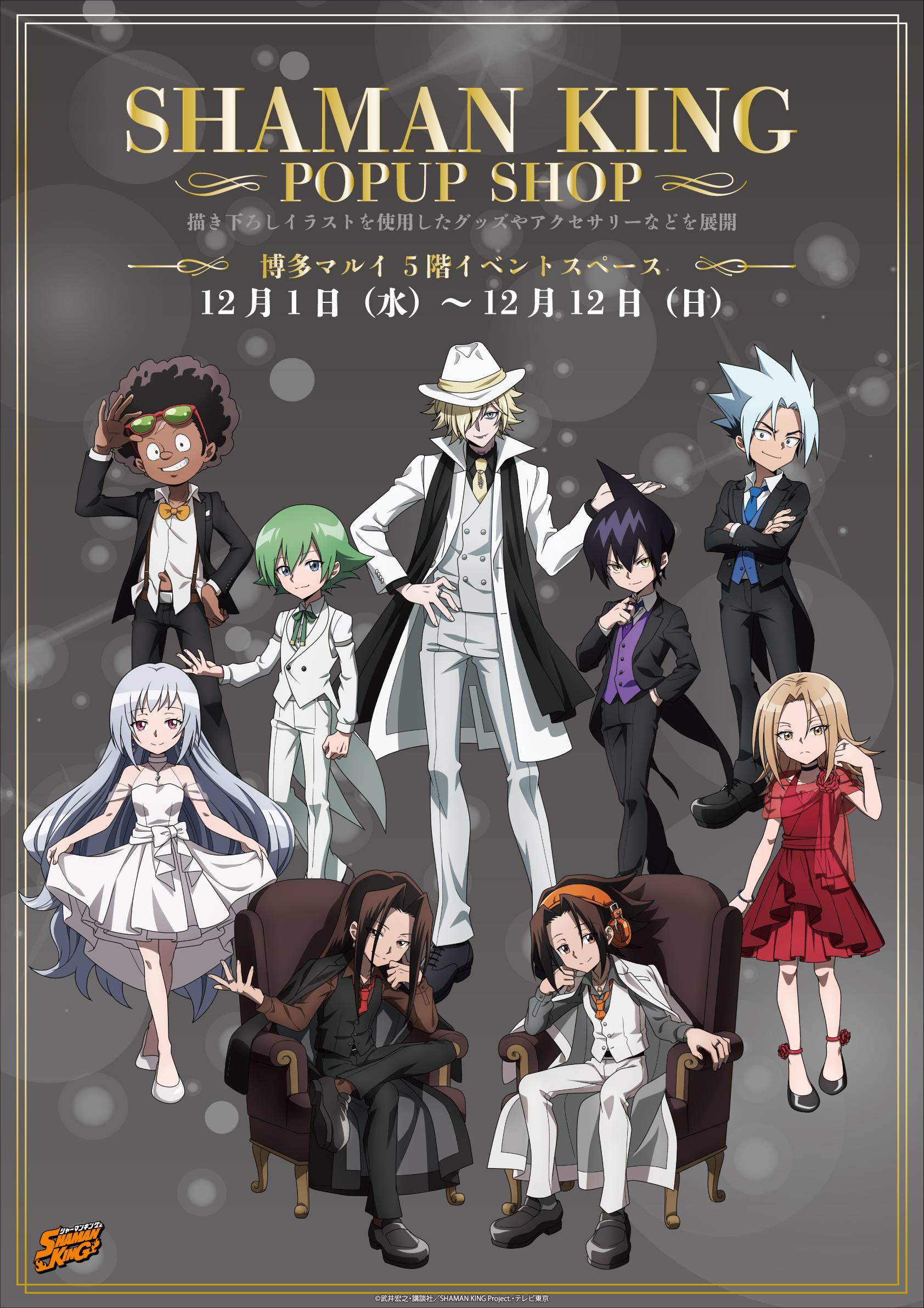 Product manufacturer Eterno Recit will be holding a new Shaman King Pop-up Shop in OIOI store locations in Japan in December 2021. This new Pop-up shop will feature the Shaman King characters in a “formal clothing” designs and feature a wide range of new products.