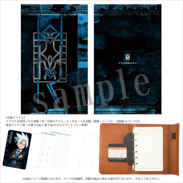The main 9 characters are all dressed in formal attire as if they were about to head to a party. Each of them is also wearing a silver accessory with an original design based on that character’s motif.