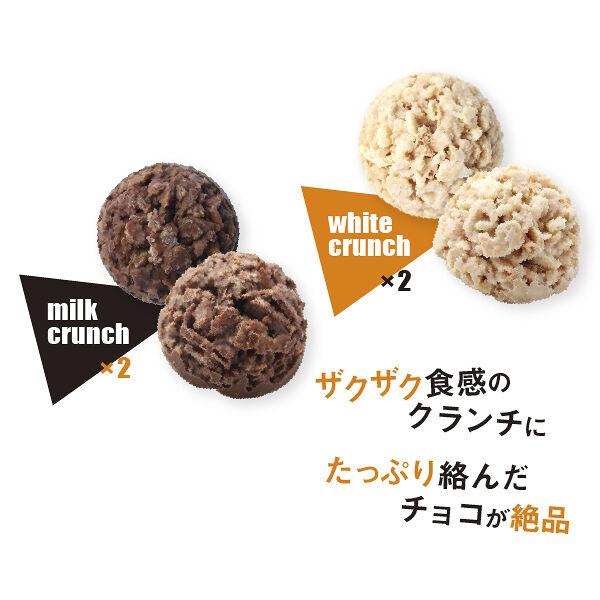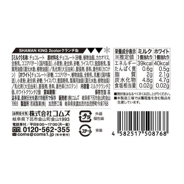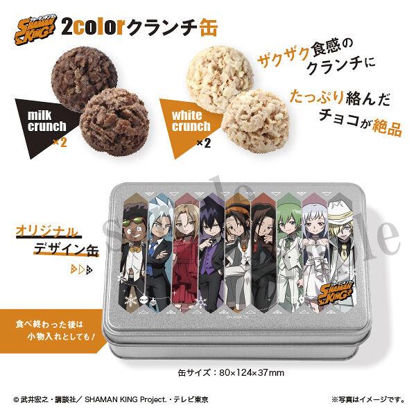 Contains 2 pieces of each a “milk crunch” and a “white crunch” inside a metal can.
