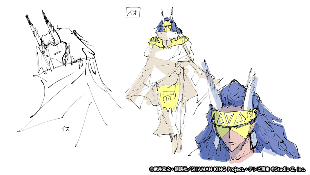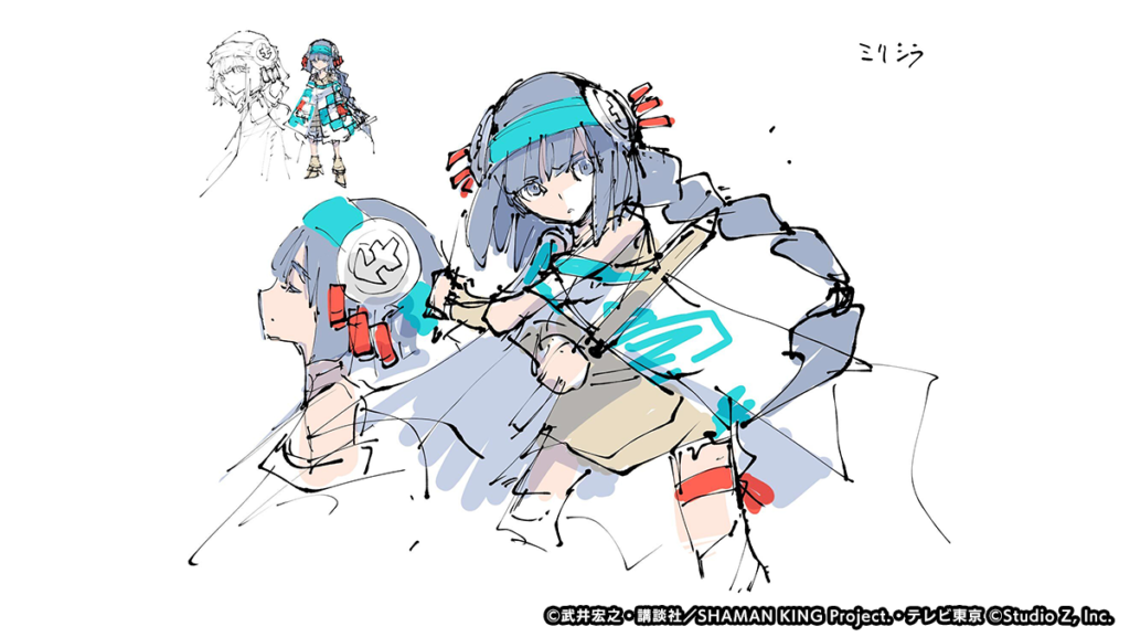 The following are the new characters created exclusively for the Shaman King: Funbari Chronicle game. As the game has not been released yet, there is limited information about them and a rough English unofficial translation has been included below with some of those details. The voice actors for the characters also provided a short comment about joining the videogame voice cast. Some of Hiroyuki Takei’s original sketches were also released.