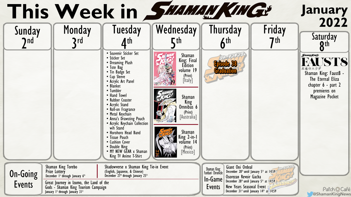 Happy New Year! This week in Shaman King a ton of new products all come out on the same day and a couple of more manga volumes. Let’s dig in.