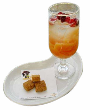 Description: A local winery offering a special 100% Grape Juice, only for this collaboration. The two flavors are inspired by the eternal love between Faust and Eliza for this match made in Izumo. The juice will be served in a cup with an original label design.