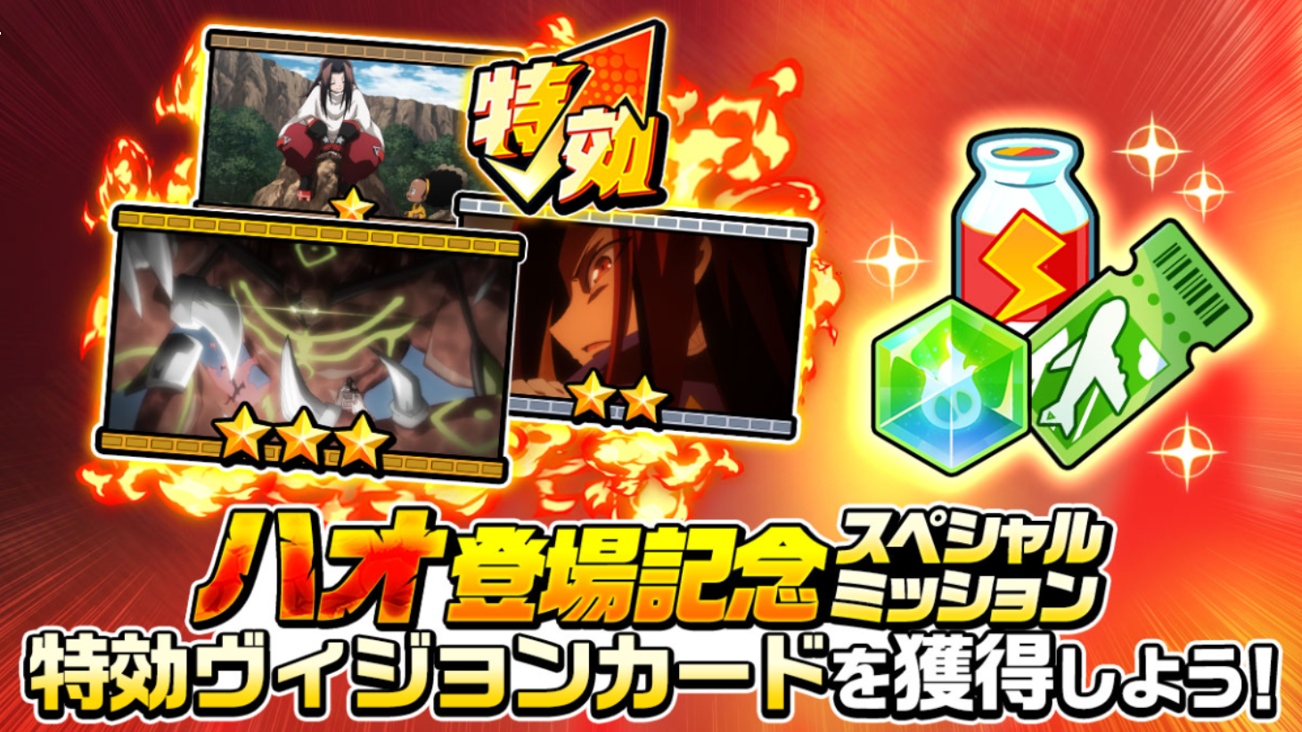 A new event called the “Special Mission” is now available on the home screen for the Shaman King: Funbari Chronicle Japanese mobile game for a limited time. The previous “Funbari Dash Mission“, which is presented to new players is still available and this special mission functions in the same style.