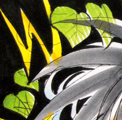 Jun’s hair was much more flat/round. Good thing he add in those spikes, since it just looks weird without! Pai-Long also is wearing clothes much more closely connected with Jun’s. Maybe he was going to be her husband instead?Just to the left of Tamao… there is a very rough sketch. This looks like the prototype for the leaf spirits!The “zombie skeleton” shown here is actually more Viking related! Takei must have scrapped the Viking connection until he got up to the ICEMEN.These leaves remind me of some sort of leaf spirit… but we don’t see any characters in this image… There is a light drawing in the darkness, but it’s hard to say what it was going to be.Yoh’s signature wear also went through some minor changes. Notice there is a cable that’s plugged into the headphones. In addition to a bracelet, his necklace is also slightly different (not the claws).So clearly this is an alternate drawing style for Amidamaru. But one thing to really notice is that “X” in the center of his chest. When Takei drew this image, he was still working under Nobuhiro Watsuki (Rurouni Kenshin) and then assistant Eiichiro Oda (One Piece). Luffy would then later receive a similar scar in the One Piece manga. Takei also used similar ideas that were adapted in One Piece as well (characters not being able to swim, multiple stretching arms, .etc).
