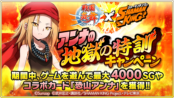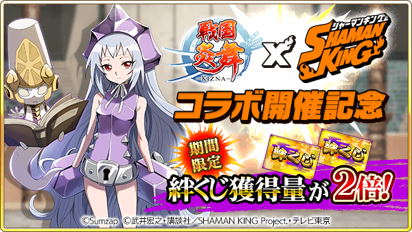 From November 16th though November 30th, the Japanese mobile game Sengoku Enbu (戦国炎舞) is holding their first collaboration event with the Shaman King series.