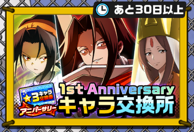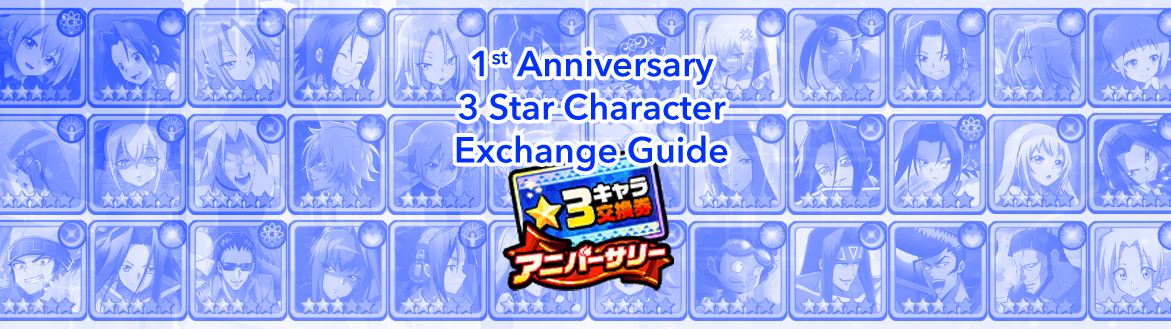 With the Shaman King: Funbari Chronicle 1st Anniversary a new “1st Anniversary 3★ Character Exchange Ticket” was added, with a special exchange. If you have a linked Japanese payment account to your Shaman King: Funbari Chronicle game, you can spend 3200 yen to buy one of these character tickets. You can only purchase 1 ticket so you need to be careful with your selection. In addition to the ticket, you will also get 3200 paid tamas.