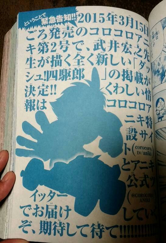 – In the March issue (on shelves in Feb) will be Takei’s spin-off story related to the “Dash! Yonkuro” (ダッシュ!四駆郎) series which was written by Zaurus Tokuda. This will most likely be a short series (1-2 volumes), similar to his “Danball Senki: Kaidou Jin’s Story” volume (3 chapters).