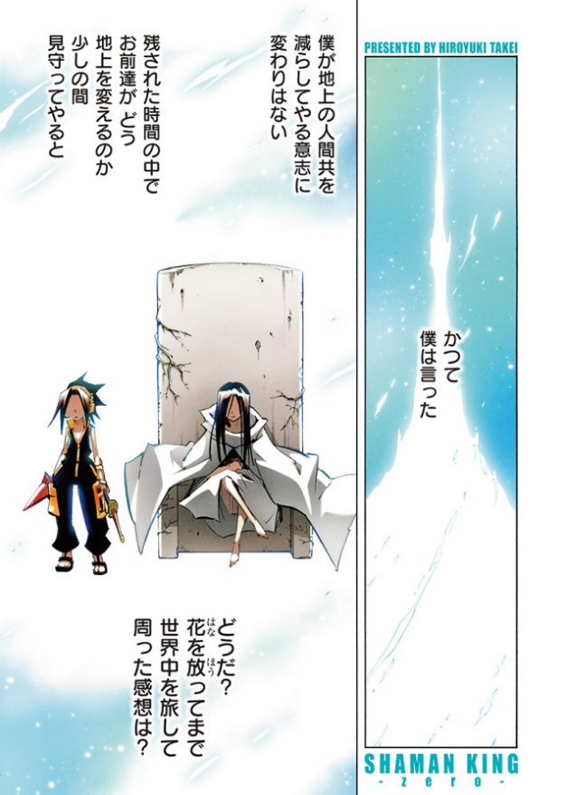 We’ll have the volume in hand late next week, so we’ll do a quick review and see if there are any major changes to the chapters. Yahabe is the most likely to have changes, if there are any. And if there is any other notes or future hints about the status of the Shaman King series, we’ll report those as well.