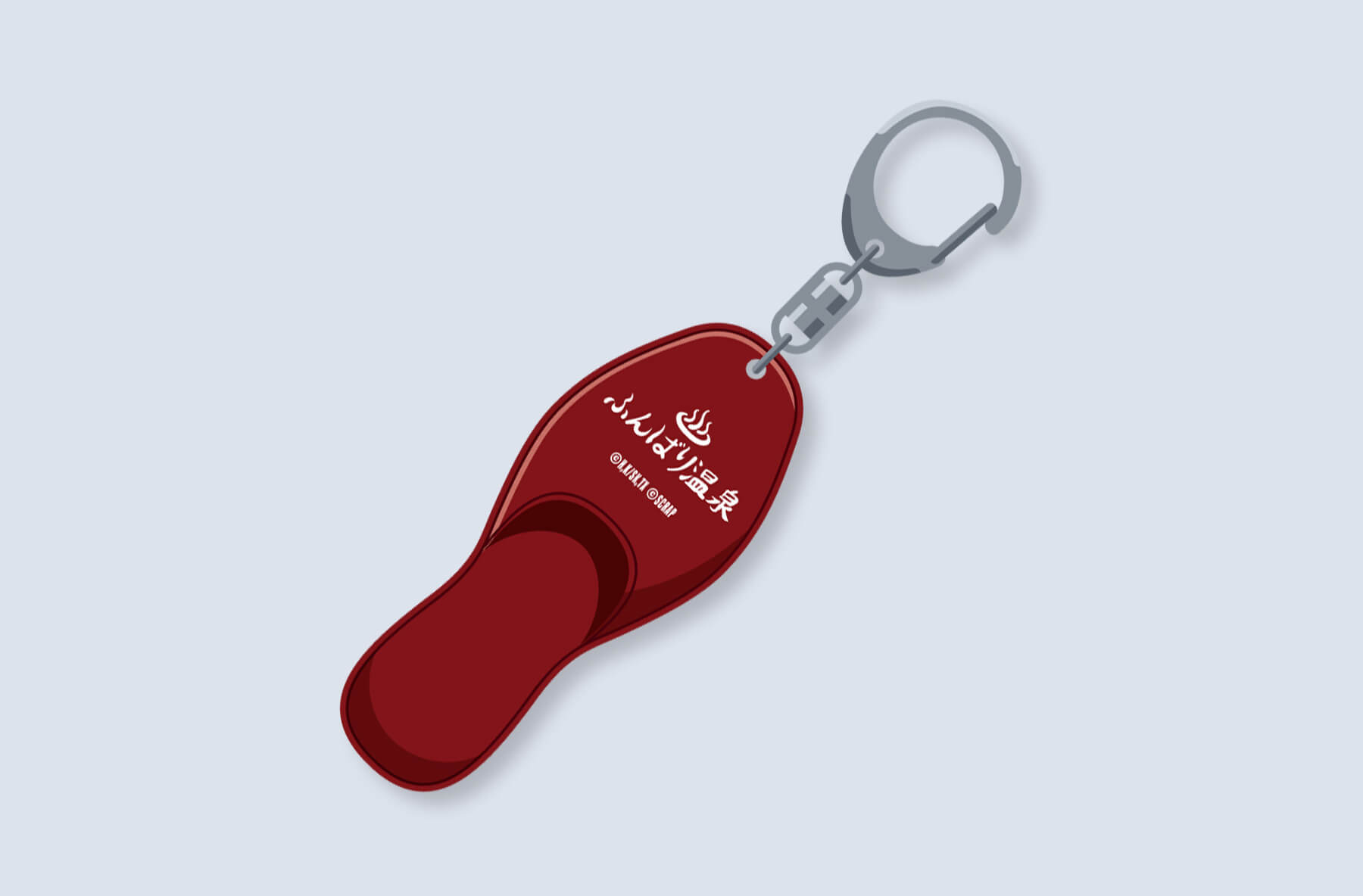 Description: A miniature slipper-shaped key chain designed with the Funbari Onsen logo!
