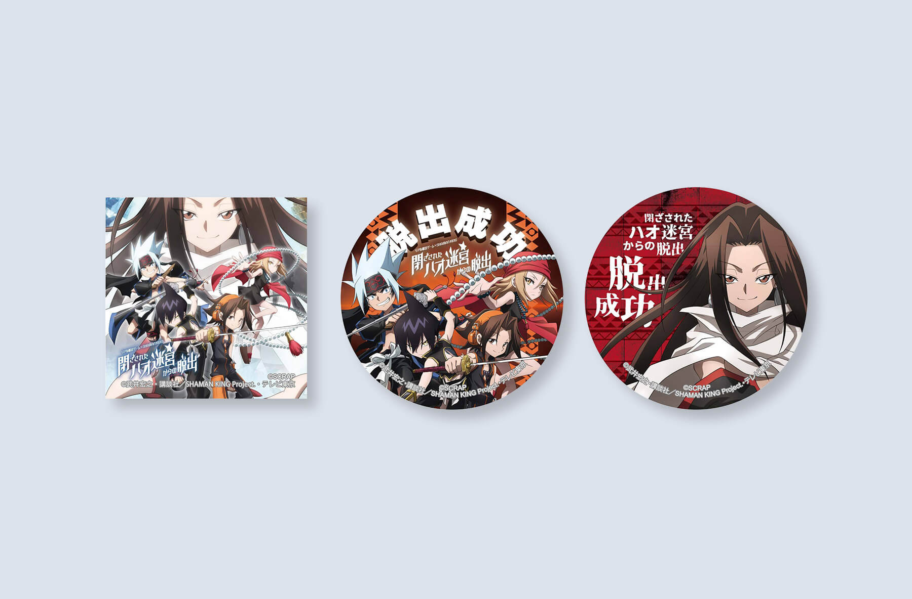 To go with the “Escape From Hao’s Locked Labyrinth” game, SCRAP has also announced several new pieces of Shaman King merch. All of the items can be purchased online from the SCRAP GOODS SHOP. Free shipping is available for orders over 7000 yen. There is no international shipping options available. Items will ship within 3 to 5 days of the order being placed. Items are available for pre-order between July 1st and July 6th. General sales will open on July 7th at 12:00. These exclusive goods may be released at other shops at that time, but no announcement has been made yet.