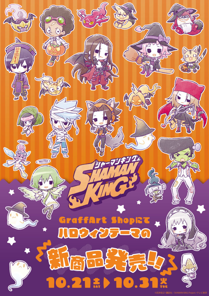 From October 21st through October 31st, GraffArt will be holding a new Shaman King Pop Up Shop featuring new art with a Halloween style. The in-store location will take place at the GraffArt Shop Ikebukuro Main Store, but fans can also pre-order the items online. Additionally, fans can also choose to order online and pick-up at the store as well. Online pre-orders are available via the eeo Store. During the pre-order period, you can also select the random/blind items via their web store so you don’t have to leave it to chance. While not announced, these items will typically be sold via other retailers at a later point as well. Online pre-orders will ship in December 2023, so if you want to have these in time for Halloween this year, you’ll need to buy them in-person.