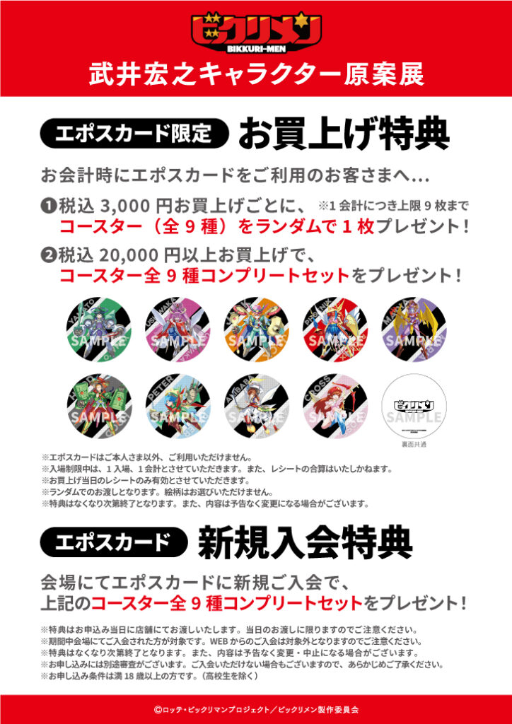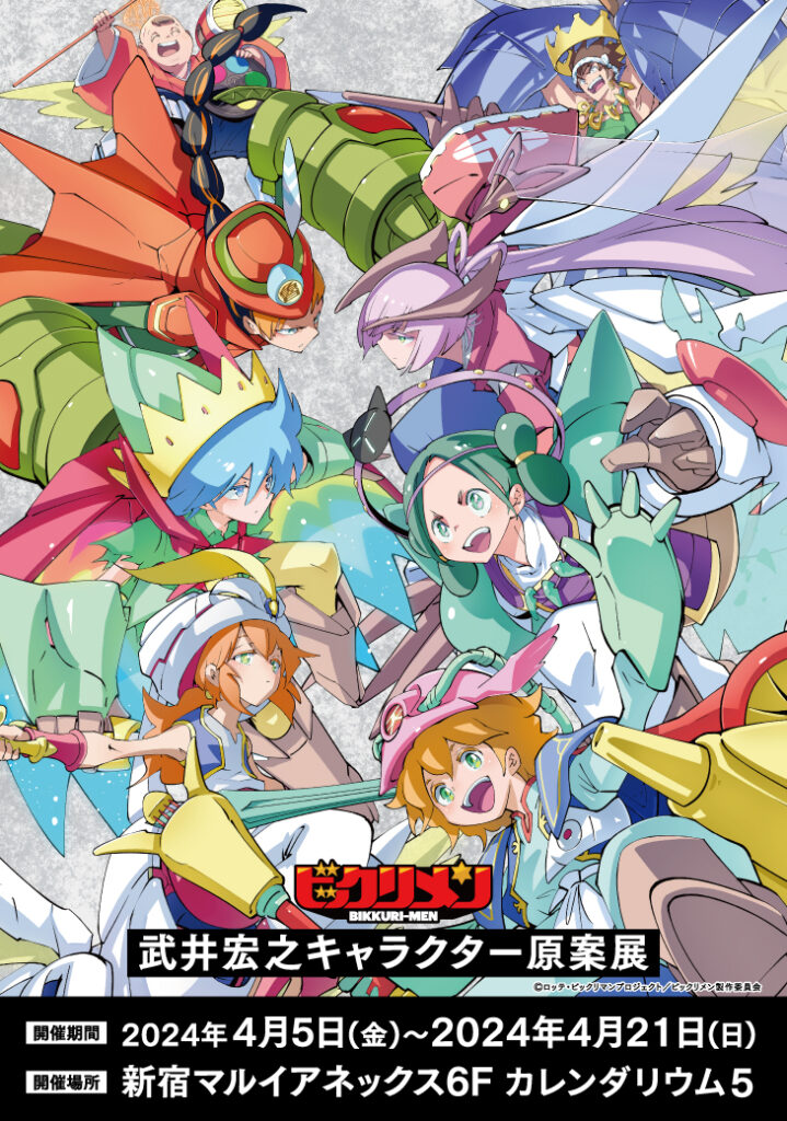 From April 5th through April 21st, the 6th floor of the Shinjuku Marui Annex is holding a special Exhibition featuring Hiroyuki Takei’s character designs for the 2023 anime Bikkuri-Men. The Bikkuri-Men anime was a modern re-envisioning of the original Bikkuriman anime and the chocolate and stickers that are still collected today. An official webpage highlighting the event has also opened.