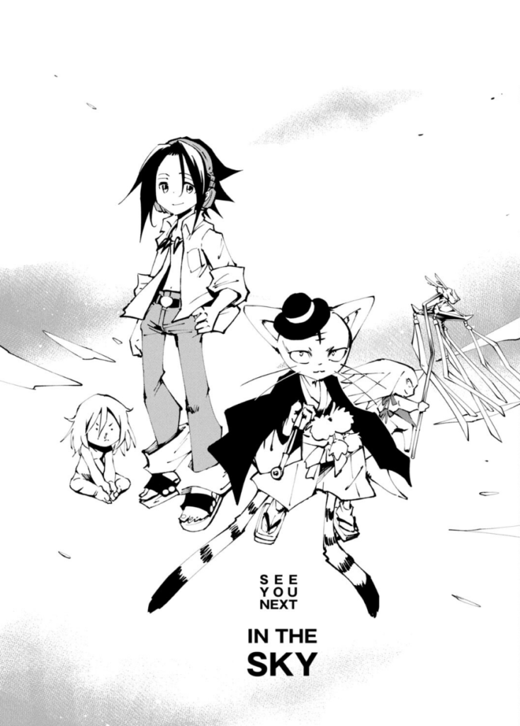 The title for the next sequel to the Shaman King franchise has already been decided. The sequel to The Super Star will be called Shaman King Yard. This has the abbreviation of “SKY.” Hiroyuki Takei had this name picked out for many years. Going back to the print edition of Shaman King volume 35 by Kodansha, a new epilogue was added to the volume release. This epilogue was titled “Day After Maize” and the final pages noted to “See You Next In The SKY”.