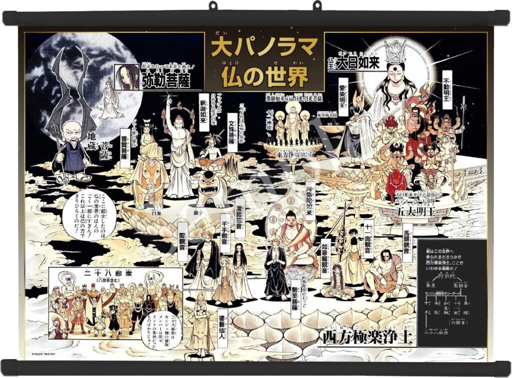 From February 22nd through March 16th, Edition 88 is holding a Butsu Zone exhibition in Tokyo at the Yurakucho Marui 8F. The exhibition is formally called “Hiroyuki Takei Art Career Roughly 30th Anniversary: Butsu-Zone Original Art Exhibition.” A special website has been created for this event. To enter the art exhibit portion has an admission fee of 1200 yen per person (tax included). The exhibit will have nearly 100 original illustrations on display from Hiroyuki Takei’s Butsu Zone series as well as his oneshots Itako No Anna and Death Zero. The area will also feature the original color illustrations and a photo spot with life-size versions of some of the characters. Some areas of the exhibition will allow photography, and some areas will not.