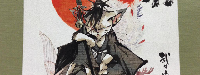As previously reported, Hiroyuki Takei’s artwork was featured in the first week for the Shonen Magazine Edge‘s twitter campaign. Each week they will give out a special prize to one person who retweets a special message. This week’s prize is a special wallscroll featuring Takei’s artwork from Nekogahara. This wallscroll is also on display at some local bookstores in Japan promoting the launch of the magazine.