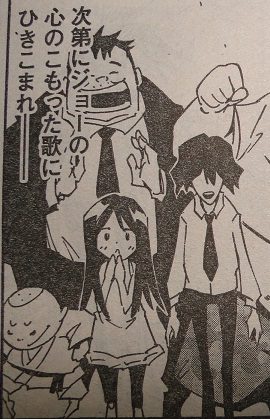 The person they hire to do it is no other than Yohmei, so Yoh tries to stop him by all means, but doesn’t achieve it. The next day, during the exorcizing ceremony, Yoh appears all of a sudden in the train station with a guitar and the spirit of Suzu’s boyfriend. Then he does the hyoi gattai for the first time and by playing a guitar song both spirits go to heaven together. After that some of his classmates stop being afraid of him, since they were at the station when everything happened.