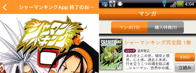 The app is recommending users to download the “Jump BOOK Store” app (ジャンプBOOKストア!), which their purchases will be transferred to (with the extras). This is part of an effort to centralize the several individual Shueisha apps into a single marketplace. It is worth noting that the Shaman King Kang Zeng Bang volumes have not been added to the Jump BOOK Store yet. Starting in July there is no way to legally purchase the Shaman King Kang Zeng Bang volumes anywhere in the world unless they are added to the new app store. Previously, the Shaman King Kang Zeng Bang volumes were sold exclusively through Yahoo!, before the “Shaman King App” was available.
