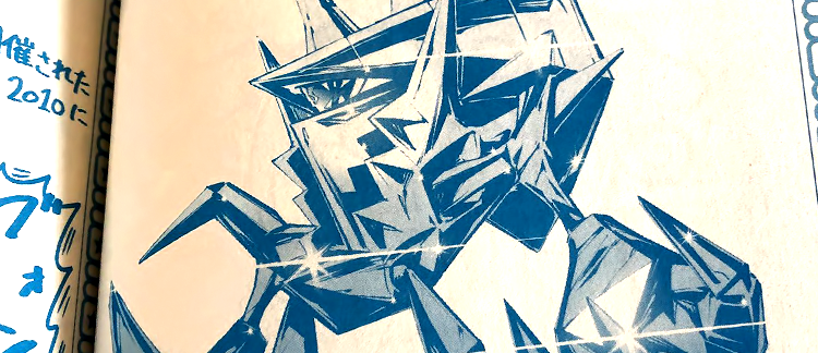 As Twitter user hukanzenna posted online, we can see that it’s an image of the Pokemon Necrozma (ネクロズマ) who plays a larger part in the Pokémon Ultra Sun & Ultra Moon games. It looks very similar to the spirits and Oversouls he drew in the later chapters of his Shaman King and Shaman King Flowers manga series.