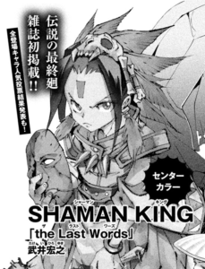 In the April issue, releasing on March 17th, the final chapter of the original Shaman King series, chapter 300 called “the Last Words.” This is the first time the chapter has been published in a magazine, and it will contain it’s original color pages. Chapter 300 has only been printed in the original Kang Zeng Bang and Remix releases by Shueisha. Additionally, in the issue the results of the Character Poll from the official 20th Anniversary website will be announced.