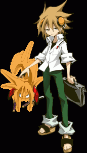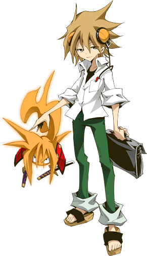 Hana: The son of Yoh Asakura and Anna Kyoyama, the main character and the heroine of “Shaman King.” Due to financial difficulties at his home, Funbari Onsen, he is burdened with the crushing pressure of rebuilding the business. At his 13s he worries about how society and himself are doing. He is known to have shamanic skills that surpass by far those of his father Yoh, but since the next S.F. will take place in the year 2500 he feels like he doesn’t know what to do with his powers.