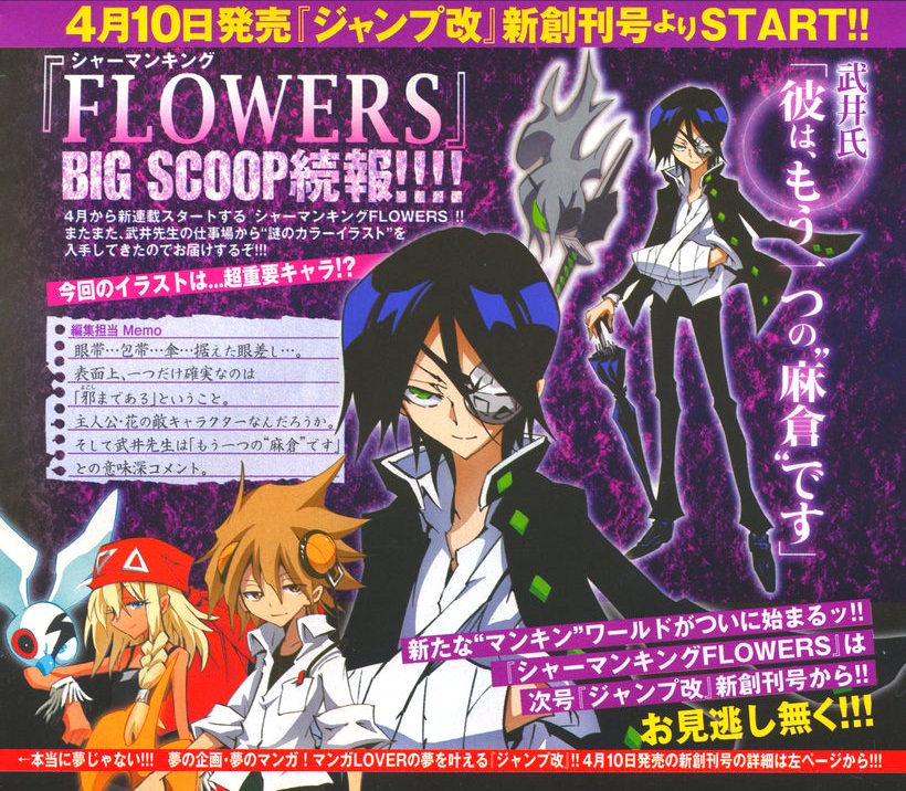 And ComicSoul also caught this interesting thing… an ad where it calls it “Shaman King 2 Flowers” (シャーマンキング2FLOWERS). That’s interesting… We’ll see if that’s the case or not soon…