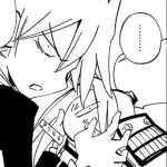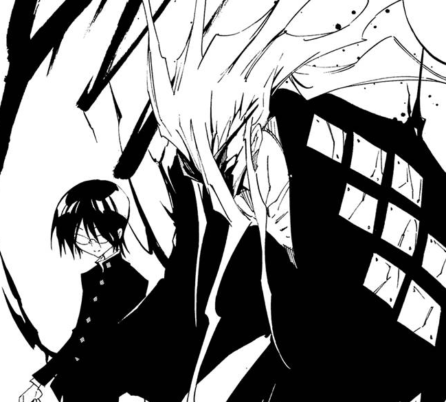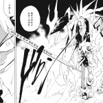 Moving down the page… we see the new “Ren” character. (OMFG STOP CALLING HIM THIS! ~Jezzy) He is classified as “Another one of the Asakura’s” (彼はもう一つの麻倉). Clearly labeled as the villain of the new story… but he’s using one of Hao’s symbols as an eyepatch!? I think we know who he is following… We’ll probably get a better image of him in the fifth Zero chapter.