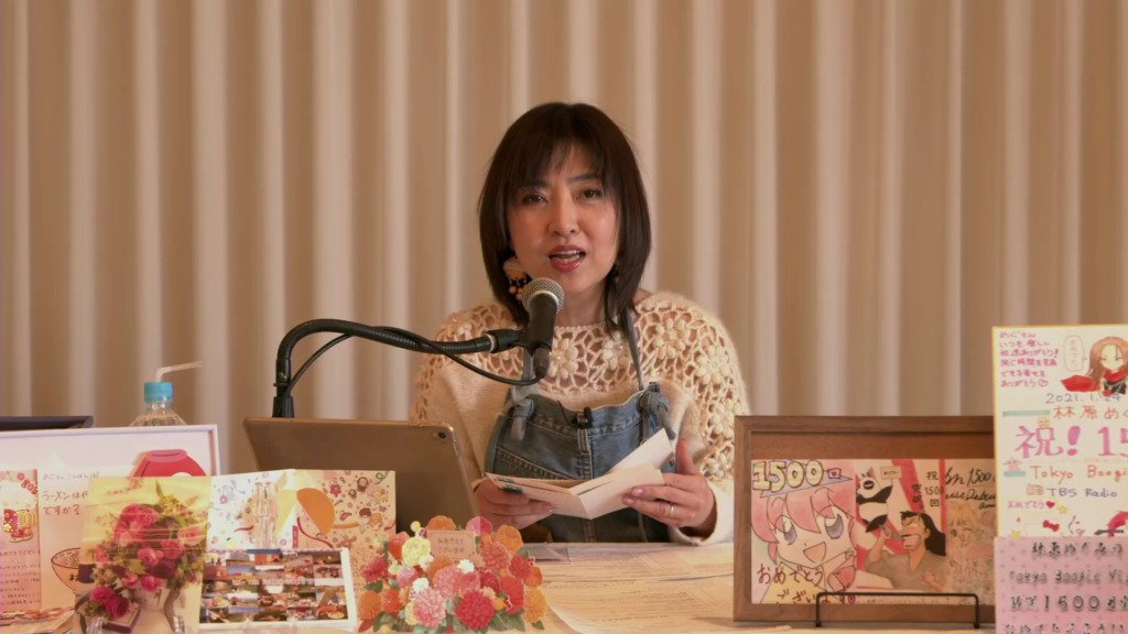 The live stream was broken up into two part. The first part was the standard “Tokyo Boogie Night” radio show, including with ad breaks. At the conclusion of the standard show Megumi then had a post-show interactive part which ran for an additional 40 minutes.