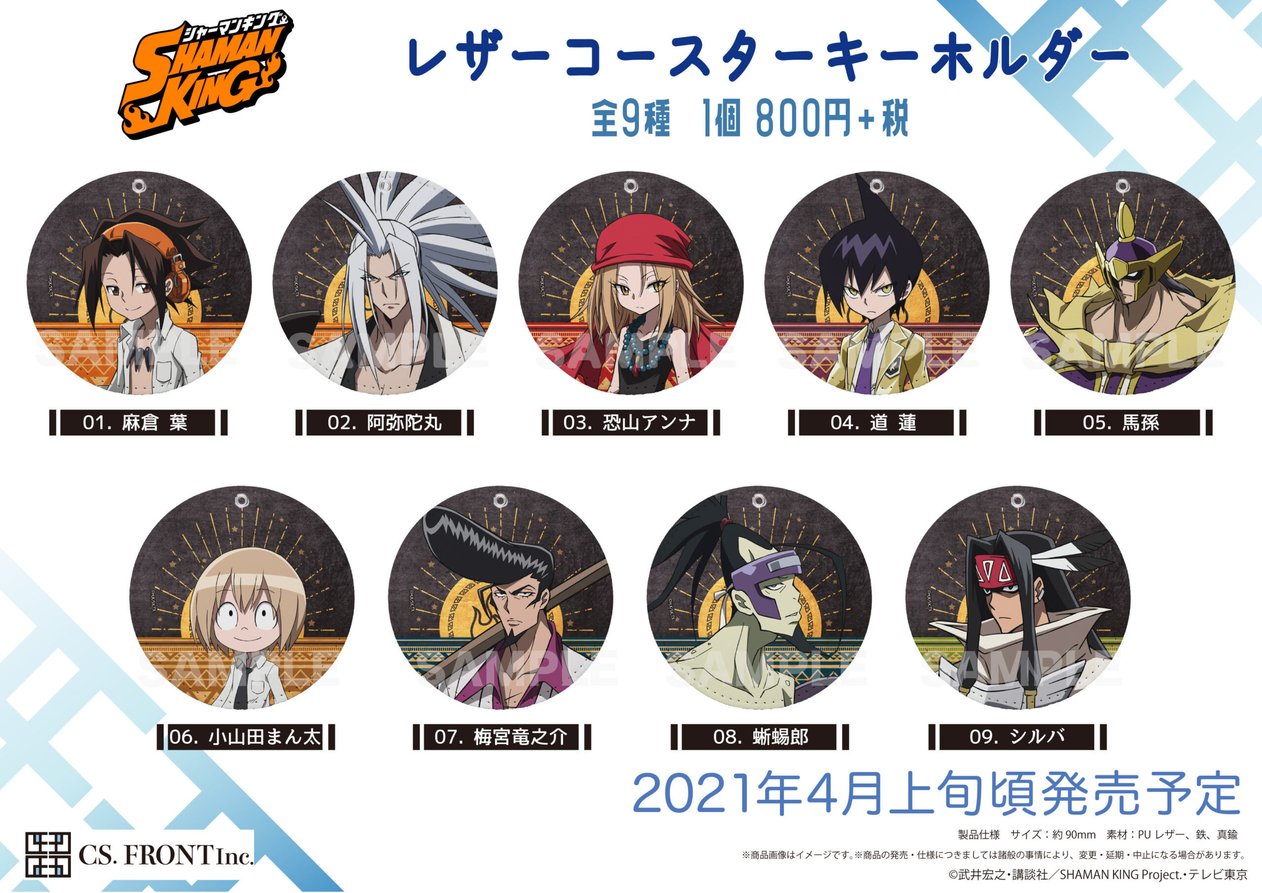 Announced earlier today are the first official products based directly on the upcoming Shaman King anime designs with an expected release date prior to the anime. The company CS.FRONT Inc, which specializes in small goods based on anime series, such as keychains and acrylics via their Crysto webstore. These products were officially announced via their Twitter account.