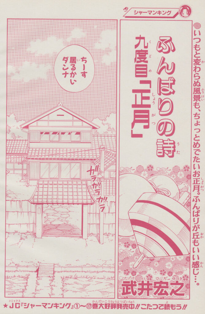 Included as a new extra was the “lost” Funbari Poem called “The 9th New Year.” The Funbari Poem (Funbari no Uta) were short extras that were originally printed in a variety of magazines in the late 90s and early 2000s. After being published in magazines such as Akamaru Jump they would then be reprinted in the standard volume releases of the manga. However one of these were never published again and became a “lost” chapter. This 5 page extra was from the Winter 2002 issue of Akamaru Jump and featured a New Years greeting for 2002.