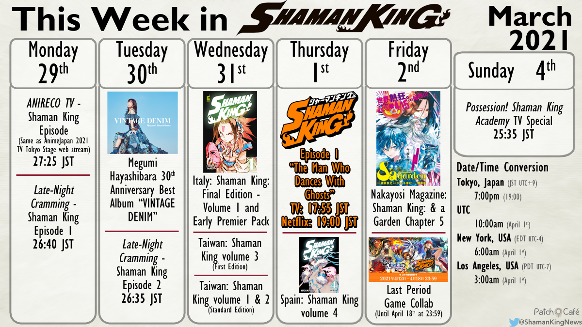 Lastly Megumi Hayashibara’s “VINTAGE DENIM” 30th Anniversary album will release this week in Japan. On the first CD, of the 3 CD set, both of the 2001 Shaman King anime’s openings are featured. They are “Over Soul” and “Northern Lights.” It’s unclear if this album will be streaming on various music platforms outside of Japan (such as Spotify), but we will keep an ear out for it! The tracklist for the album was covered in a previous article here on Patch Café. There is also a sample of some of the songs in this official video uploaded last week.