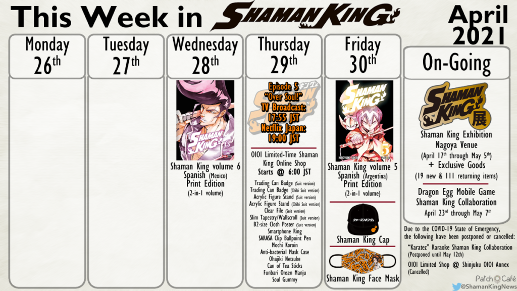However the OIOI Limited-Time Shaman King Online shop is still planned to start on Thursday morning at 6:00am in Japan. While you can’t pick up the items in-person, this online shop is a great alternative that they already had planned! When the website is live, you can view those products here.
