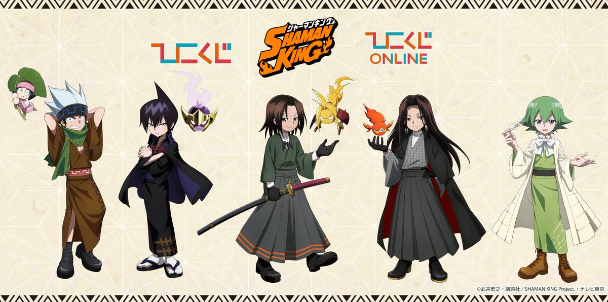The Hikokuji event will be split into two events, and online version and an in-store version. With this event brand new art has been created, which uses the modern kimono designs for various Shaman King characters. None of the prizes have had their designs revealed yet.