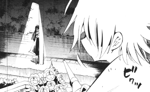 Then later, Hana started watering some flowers while talking to Amidamaru. But then… he see Luka spying on him (in Ultimo style)! Then Luka attacks with her special weapon… a Star wand! Can Hana stop her offensive? Who knows, it ends with a big “crash” sound effect. Don’t worry, this only takes up two thirds of the page.