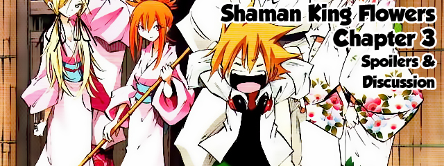 [wpspoiler name=”Shaman King Flowers Chapter 3 Spoilers” ]Only 1 color page this time! There is no color spread.