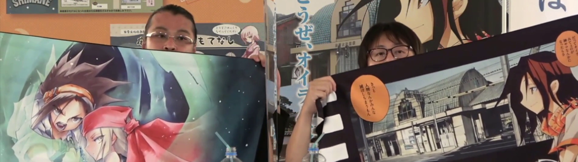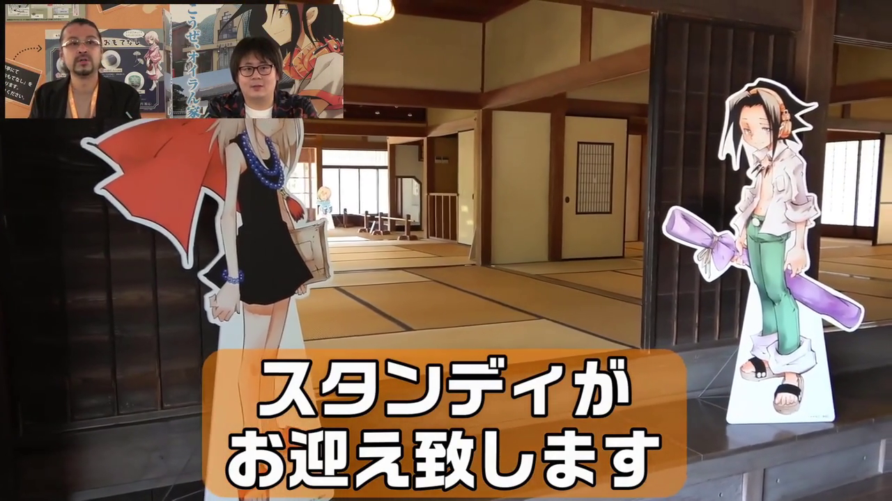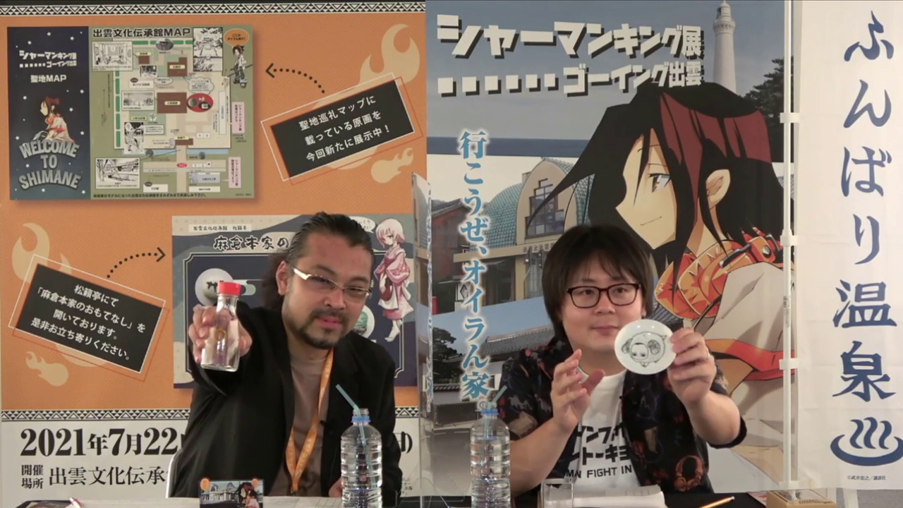 The stream was hosted by “Y-Da” (Left in video, full name Moriyoshi Yoshida), who is Hiroyuki Takei’s manga assistant for Shaman King: The Super Star and “Y-Da The Second Generation” (Right) who also assists with Shaman King-related projects. After a short introduction, they jumped into a video walkthrough of the Shaman King Exhibition and Museum for the Izumo venue while they commented over the pre-recorded video.